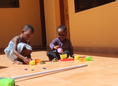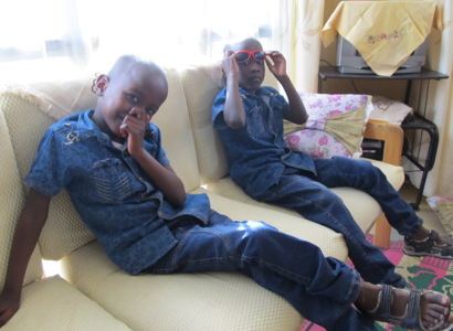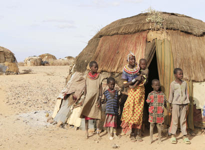 Tveir litlir drengir eru að leika sér úti í bakandi heitri sólinni í þorpinu Marsabit í Kenía og móð...